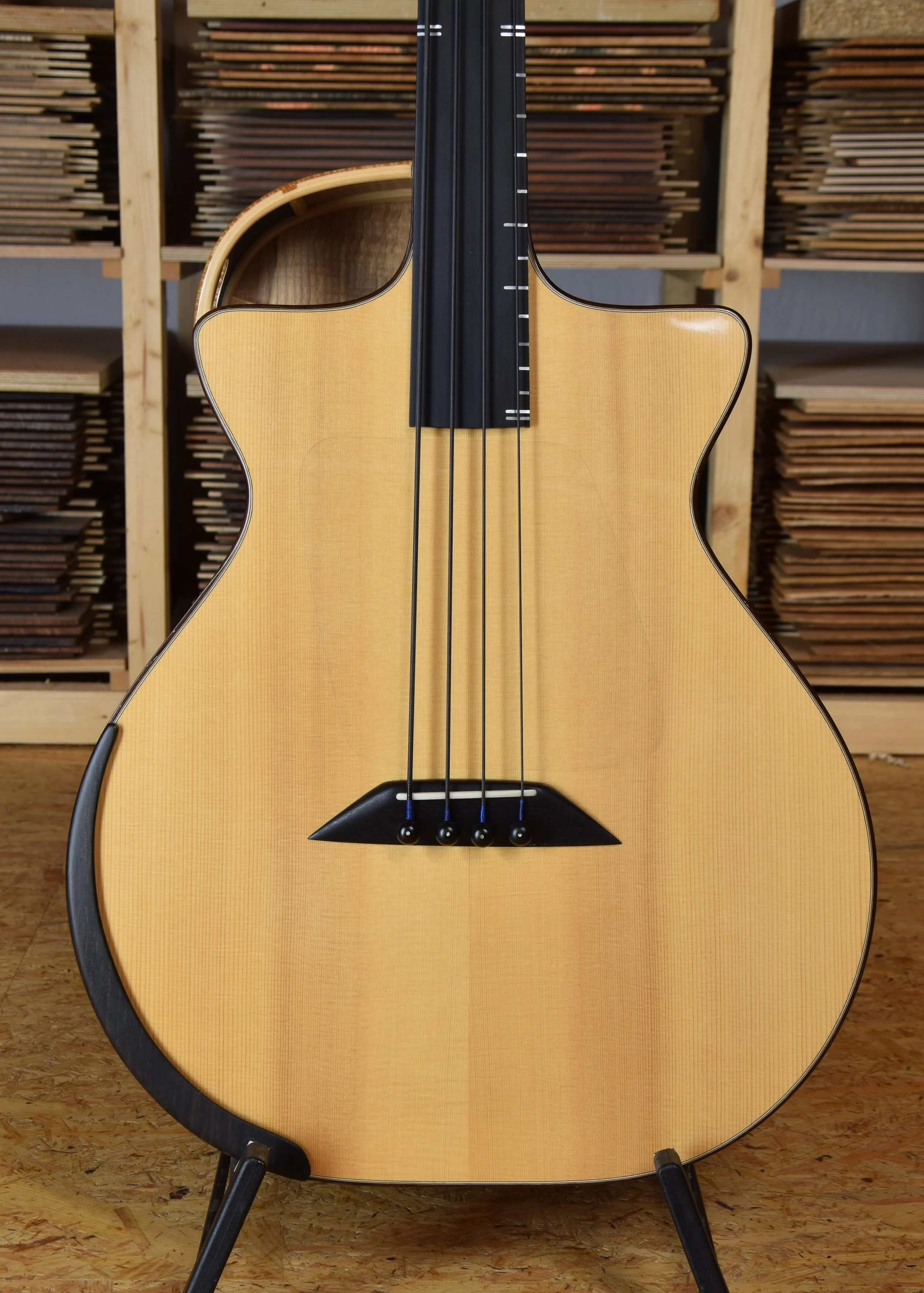 Eine bundlose Bassgitarre mit kurzer 30” (762 mm) Mensur, Sattelbreite 39 mm. Hipshot Mechaniken inkl. D-Tuner, Fishman Matrix Infinity Mic blend Pickup, maßgefertigtes Lederetui von Artur Benedykt. Aus der Sammlungsauflösung eines Stammkunden. Kaum gespielt. Eine Präsentation von exakt diesem Instrument im Video: https://youtu.be/u3iULmnKdCs?si=cum7nO2AEFNHp88G